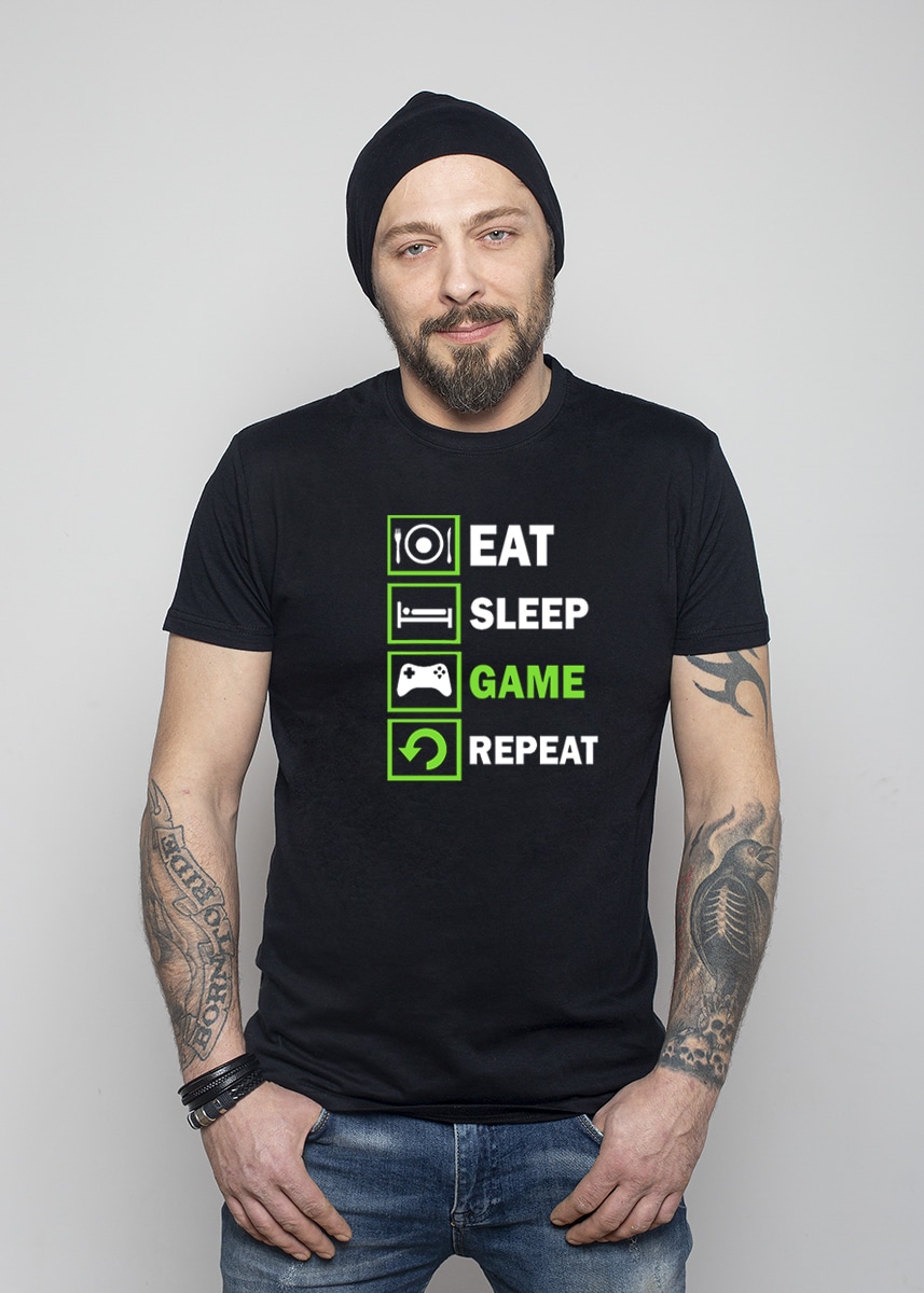 Koszulka Eat, sleep, game, repeat. T-shirt męski z krótkim rękawem.