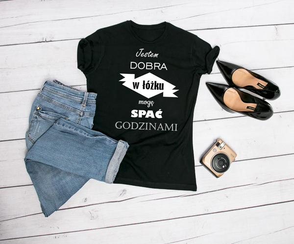 Koszulka oraz nadruk wykonane w najwyższej jakości. Dostępna w 3 klasycznych kolorach: białym, szarym i czarnym. Idealna na prezent. Spraw sobie damską koszulkę z napisem!