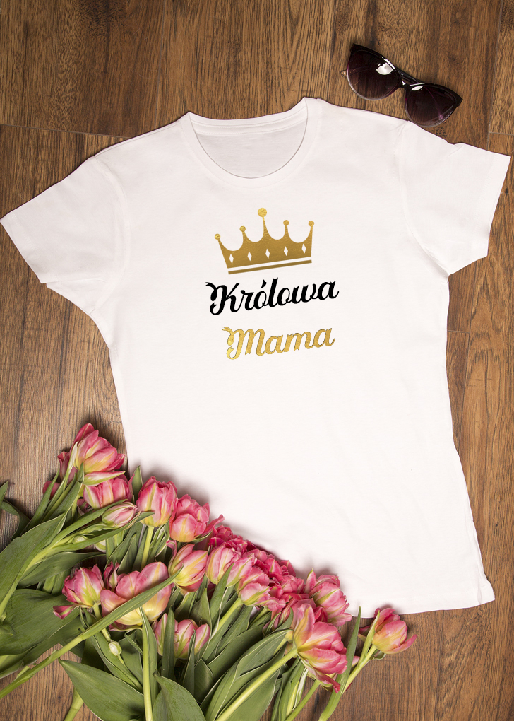 Koszulka Królowa mama. Koszulka oraz nadruk wykonane w najwyższej jakości. Dostępna w 3 klasycznych kolorach: białym, szarym i czarnym. Idealna na prezent.