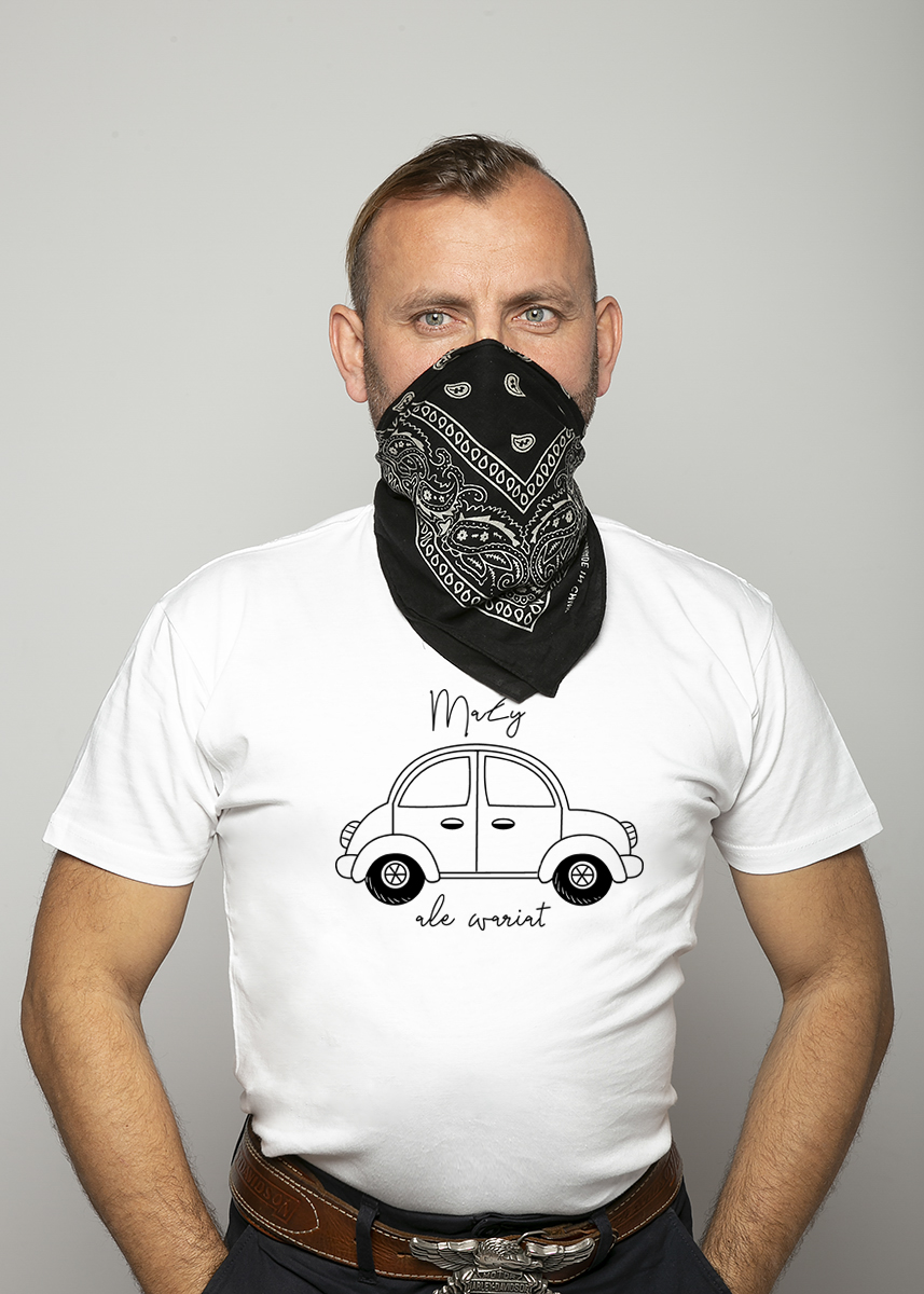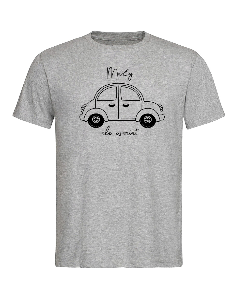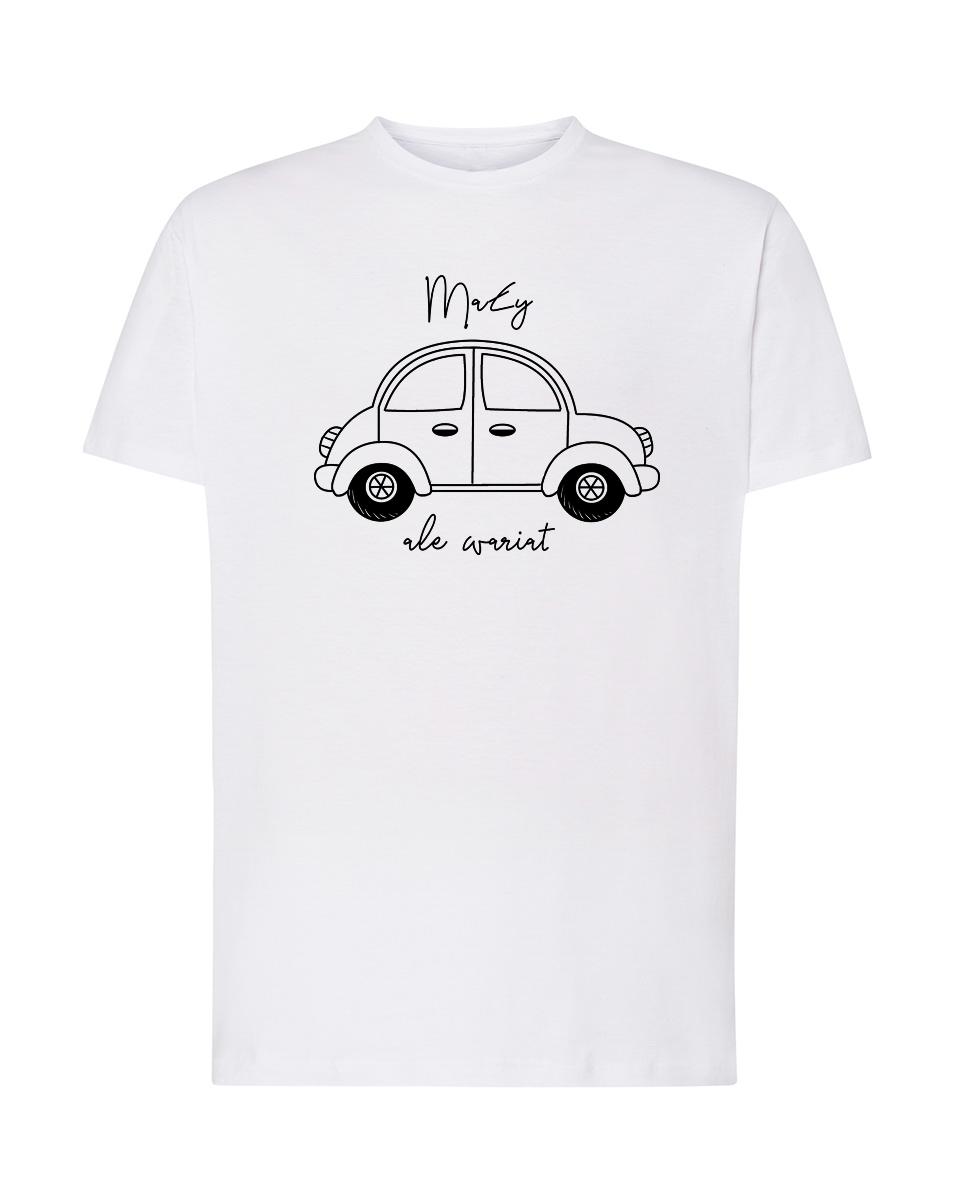 Koszulka Mały ale wariat. Koszulka oraz nadruk wykonane w najwyższej jakości. Dostępna w 3 klasycznych kolorach: białym, szarym i czarnym. Idealna na prezent.