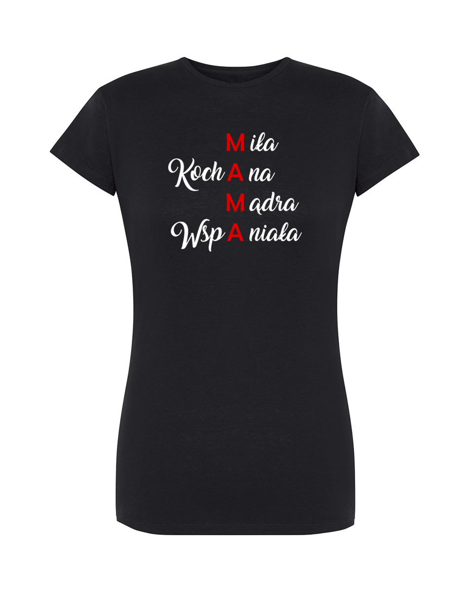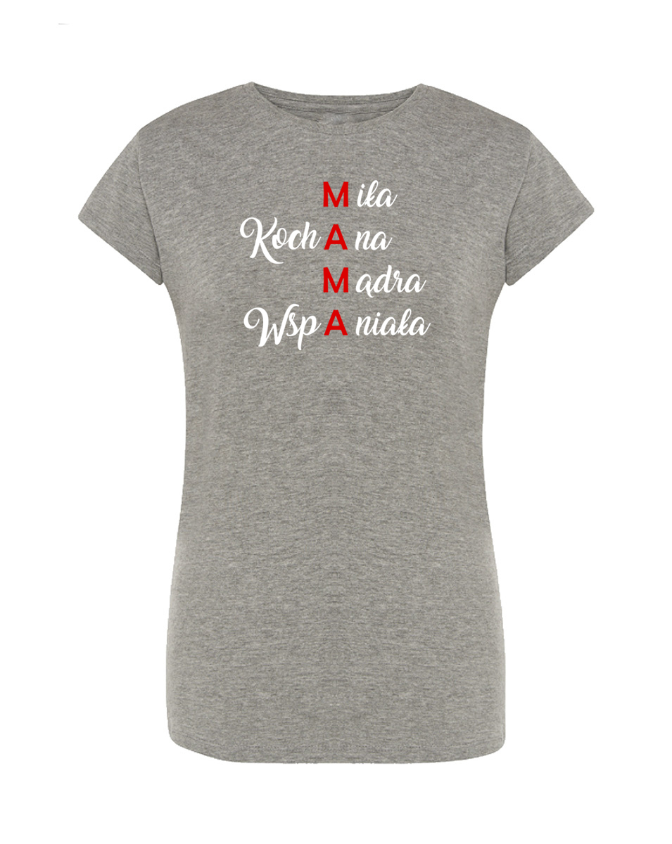 Koszulka Mama. Koszulka oraz nadruk wykonane w najwyższej jakości. Dostępna w 3 klasycznych kolorach: białym, szarym i czarnym. Idealna na prezent.